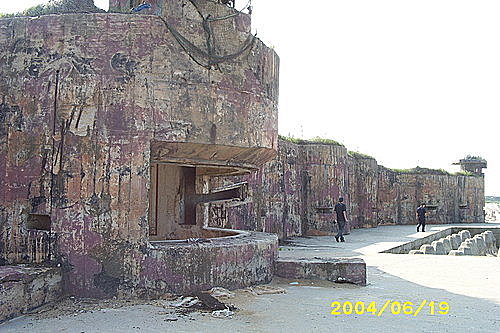 上圖:砲堡外觀〈和我的班哨一模一樣〉;下圖:90砲實體與人員
