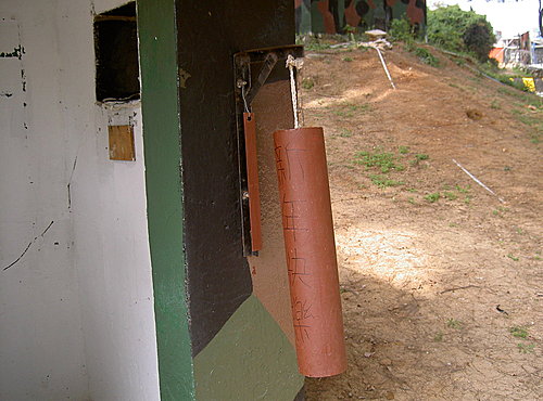衛兵崗哨掛著一隻寫著新年快樂的鋼管,在金門呆過的軍友都知道這是毒氣的警報器,春天時金門的兩個衛哨一個是要帶防毒面具的,如果一個突然倒下,衛兵要敲毒氣訊號來警告全連的弟兄,我服役時只聽到敲過一次,那不是對岸放毒氣,而是據點旁的自來水廠氯氣外洩,危急來時,每個人帶起面具非常確實迅速,沒有漏氣的,全連快跑到內洋營部避難,也沒有人昏倒,人遇見狀況時潛能自然出來,只是面具也扯壞十幾個,承蒙朋友幫助,我把堪用品換回來,成為更紅的紅人。